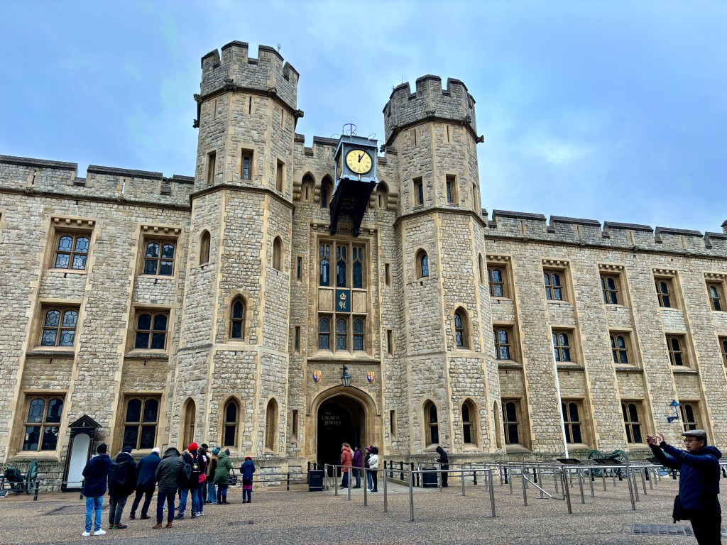 The Crown Jewels of England are held in this building. No pictures were allowed inside but we saw the extensive collection of ceremonial scepters, crowns and “baubles” used in royal pomp and during the coronation of monarchs.