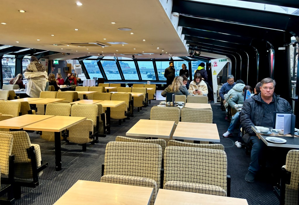 We headed to our next activity and boarded a boat for a Thames River Cruise with Afternoon Tea.
