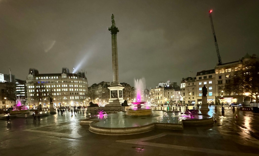When we got off the tube we walked through Trafalgar Square. The monument is Nelson’s Column to commemorate Vice-Admiral Horatio Nelson’s victory at the Battle of Trafalgar during the Napoleonic Wars.