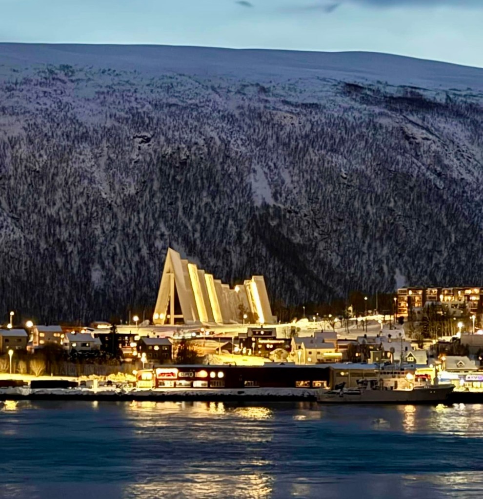 We saw Tromsø’s Arctic Cathedral all lit up in the distance. We’d be visiting there the next day.