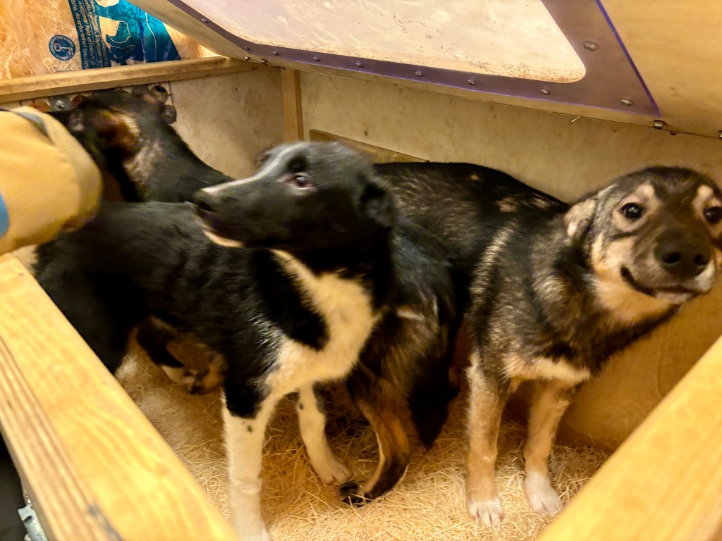 This is their next generation of Alaskan Husky Dogs. They are four months old. Their kennel has inside and outside areas.