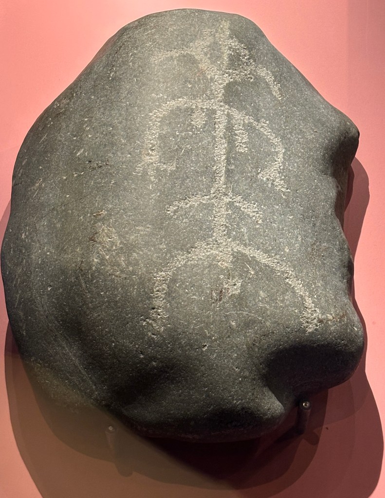 This rock carving is 4,000-5,000 years old. It was discovered around 1950, in a potato field near Alta.
