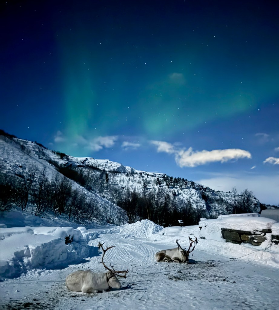 We were trying to do artsy shots with the reindeer while we waited for the lights to intensify!