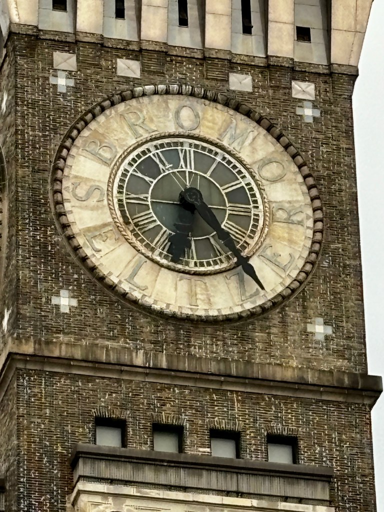 The clock faces on each side of the tower are ringed by letters spelling out Bromo-Seltzer.  Their primary product was a brand of antacid.  Bromo-Seltzer’s original formula had to be reworked over time  when two of the ingredients were found to be highly toxic.