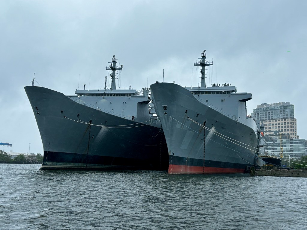 These ships are part of the U.S. Navy’s Ready Reserve Force designed to supply American troops around the world very quickly. Ships in the force are positioned at ports along the eastern and western seaboards and the Gulf of Mexico.
