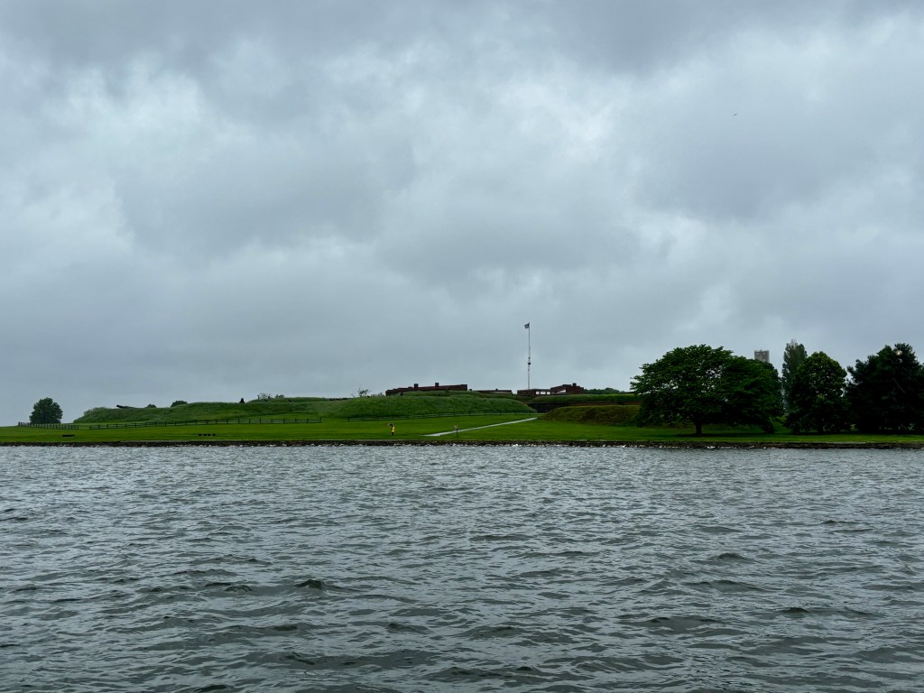 Every spring since 1980, the Coast Guard has set this historic buoy in the harbor. It is placed near the spot where Frances Scott Key observed the 1814 British bombardment of Fort McHenry. He had been detained aboard a British ship while on a diplomatic mission. The buoy is removed each year before winter. We did not see it but were told about it.