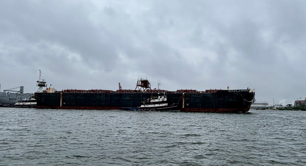 Too bad about the rainy cruise. I’m surprised that they went out with only three folks. Probably didn’t make any money on that trip! I find it so interesting that they barge sugar cane all of the way up from Florida to a refinery in Baltimore. Enjoying your visit.