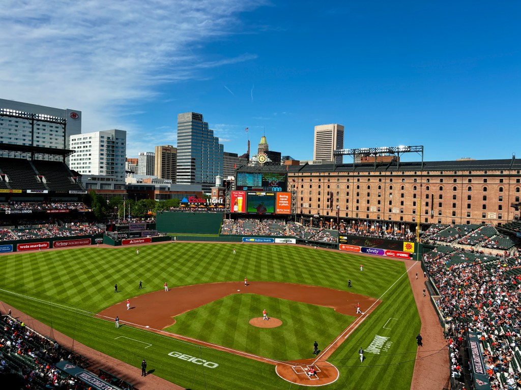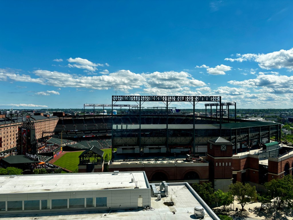 However, at Camden Yards they follow those up with Thank God I’m a Country Boy and everyone sings along. We were a bit confused by that because Baltimore is a good sized city and the surrounding area isn’t really very rural. We asked a local fan sitting near us about it, and he couldn’t explain it. He just said it has been happening for the 30 years that he has been going to Orioles games.