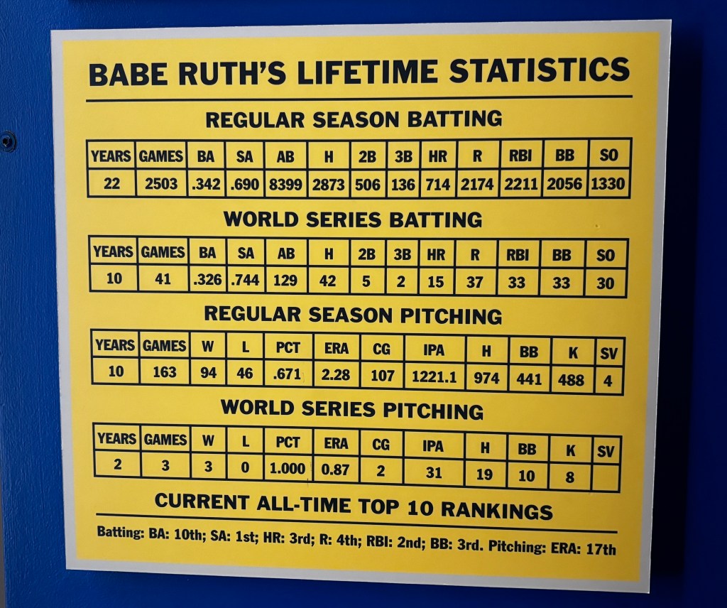 We were able to walk to the museum and learned that George Herman Ruth was born in this row house. His mother went to her parents’ house for his birth as the apartment she shared with her husband was above a rowdy tavern.