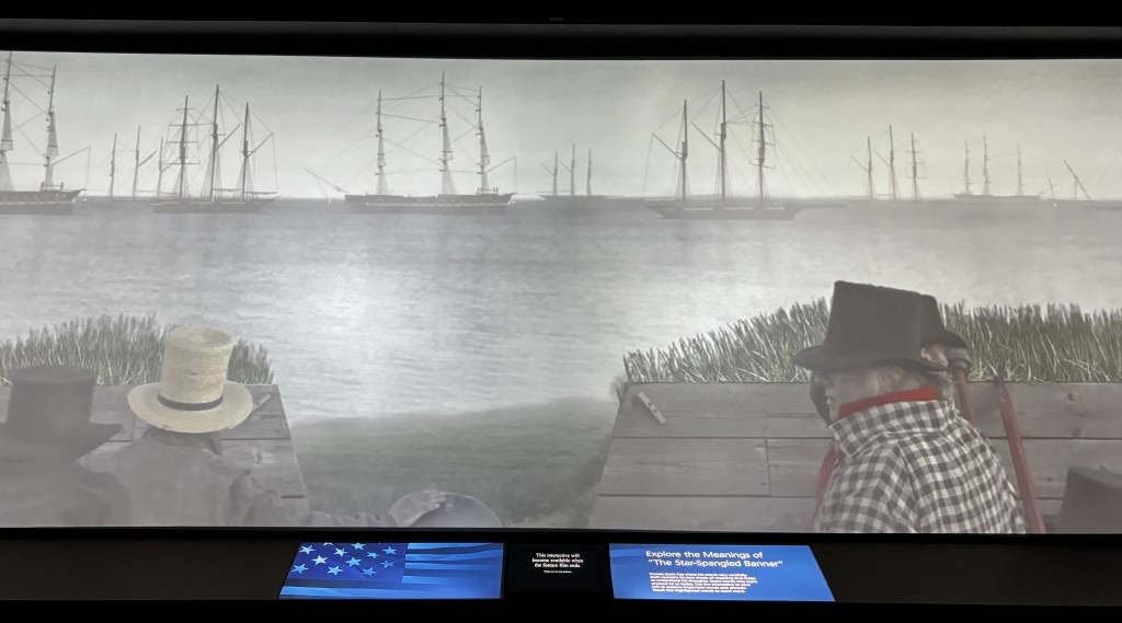 The video finished with the screen being raised to see the flag still flying over Fort McHenry. We were not allowed additional time in the visitor center or grounds. Hmmm.