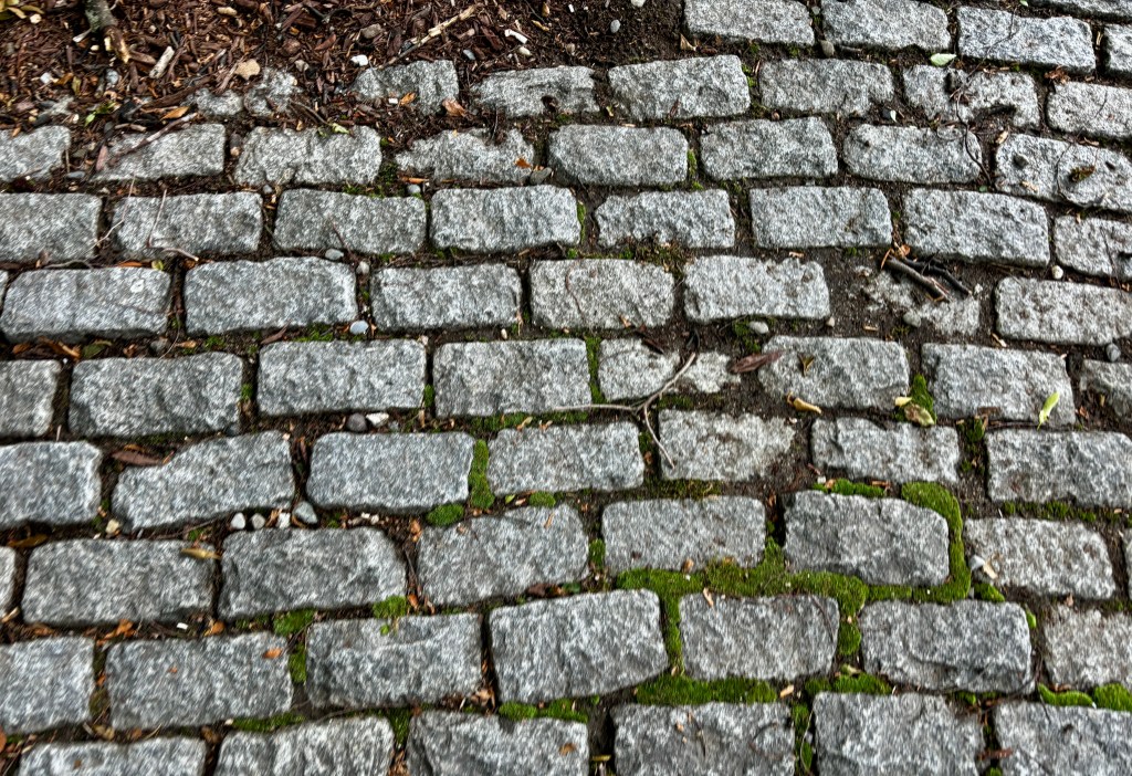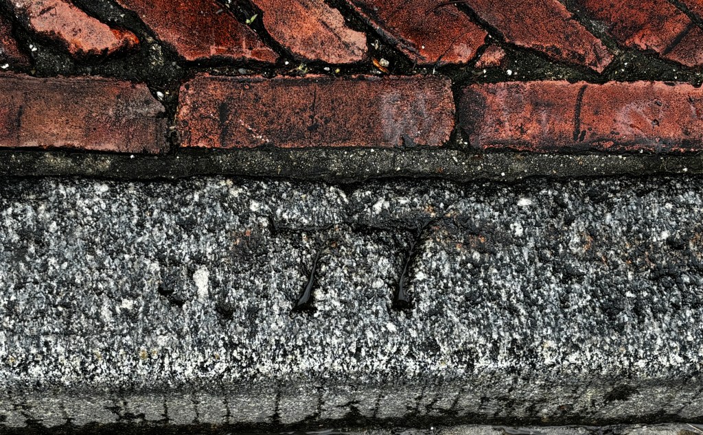 The bricks on buildings have also “woven” a bit over time. Look above the lower window on the right.