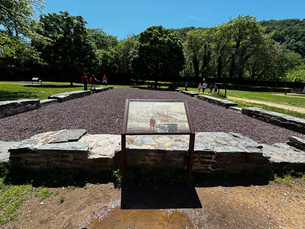 George Washington chose to build a national armory in Harpers Ferry. The picture shows the remaining foundation of a small arms depository. Additional foundation is below ground.