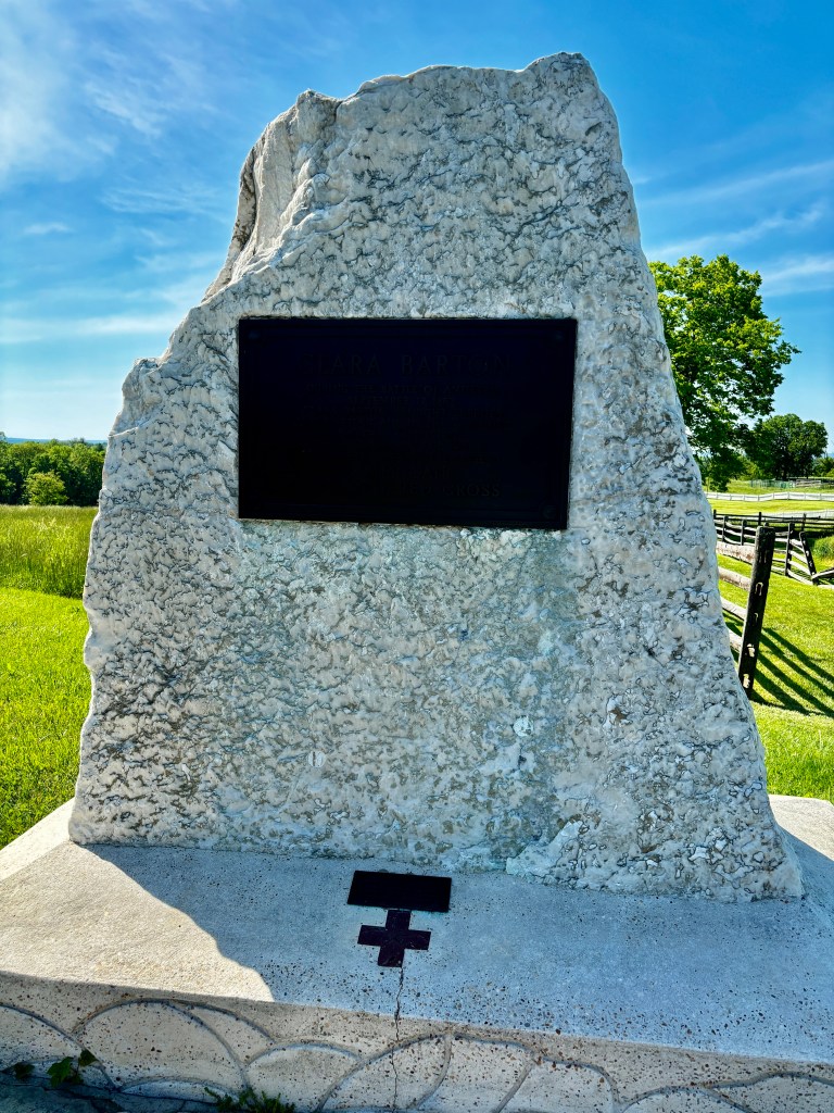 Although the writing is not visible in the picture, this monument is for Clara Barton. She, with her staff of 30, did what they could to assist the injured and dying. They were in this area for three days before moving on to the next battlefield.