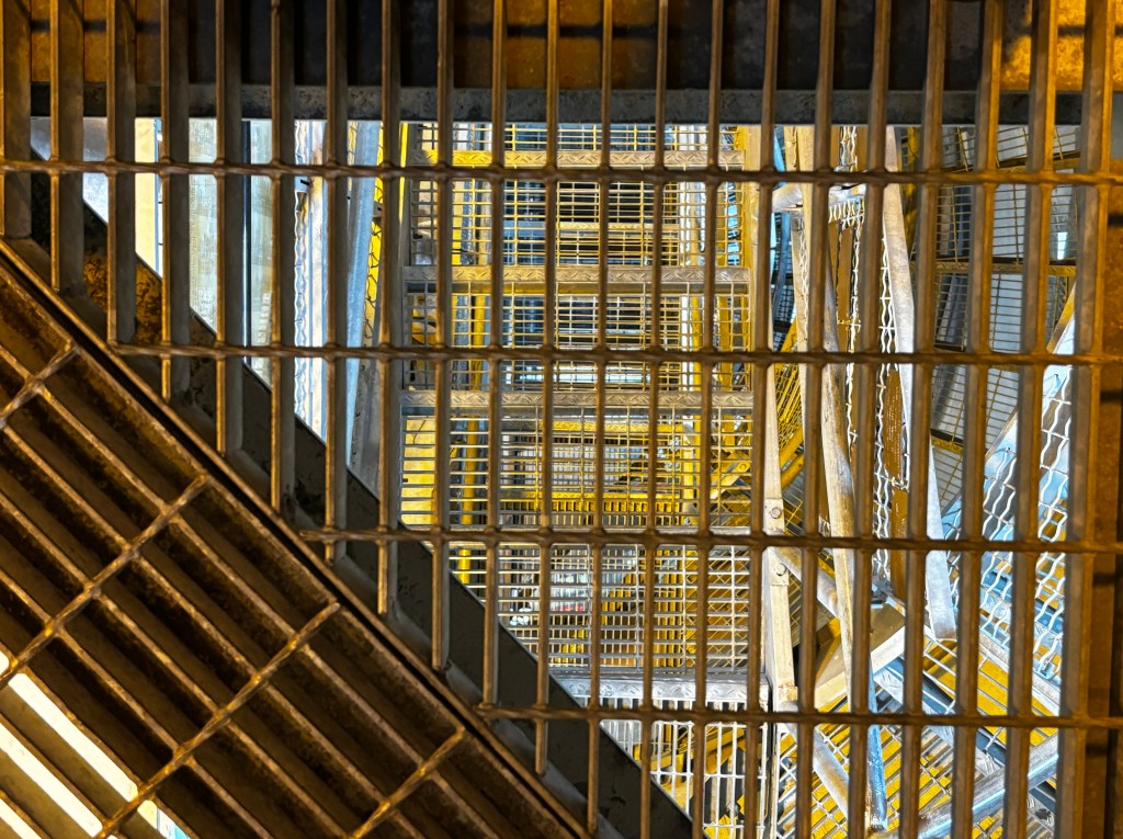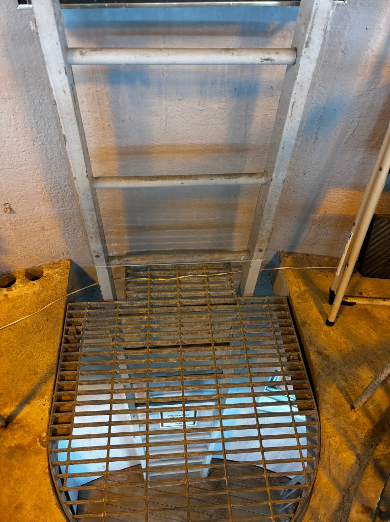 The tower walls were made of one-foot concrete poured in place.  The tower is seventeen feet wide with an interior that is fifteen feet in diameter.  The walls were reinforced with iron bars but almost everything else was made of wood.  Metals were needed elsewhere in the war effort.