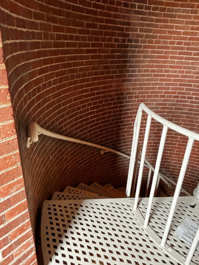 There are 199 steps and six landings.  The light house operated for the first six years without any railings.  The outer railings were added in 1865.  (The inner railings were added in 1988 for tourists.)