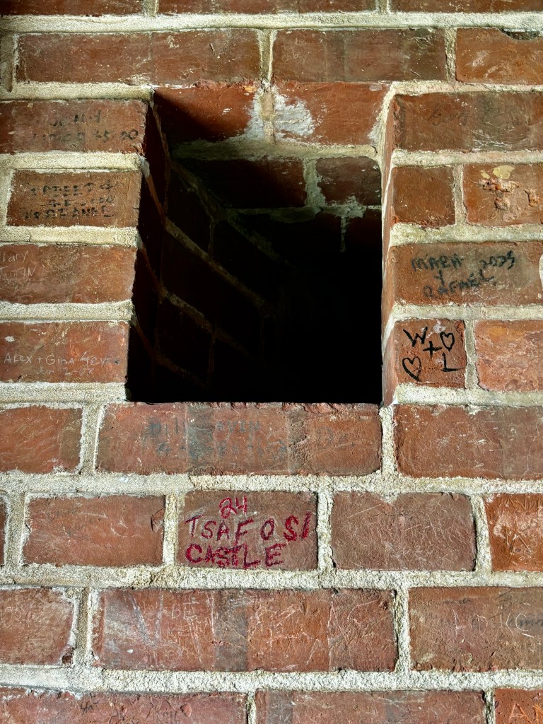 This tower had only one viewing slit at the top while some others in Delaware had two or three.  Only one was deemed necessary because this tower was connected with only one battery.