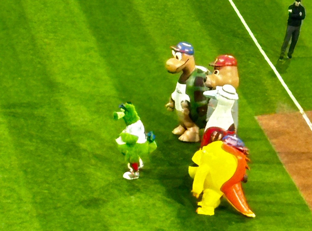 We were entertained by the original mascot, the Philly Phanatic. The Phanatic was portrayed from 1978 to 1993 by David Drummond. From 1993 to present (2024) the Philly Phanatic has been portrayed by Tom Burgoyne. That is two people in 46 years!