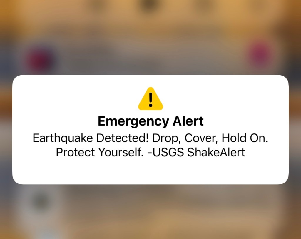 The alert was for an earthquake, later learned to be 4.7 magnitude centered in Malibu.