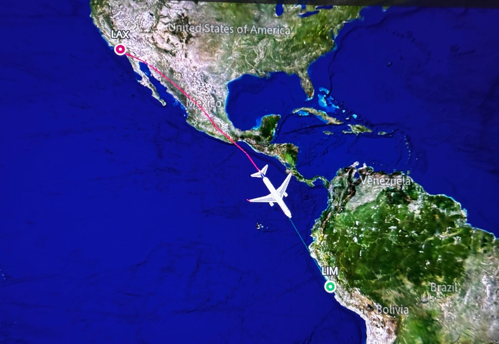 Our flight to Lima was 8 hours on Latam Airlines, the airline of Chile. The table apparatus on one of our business class pods was broken so the gate agent was going to move one of us to a different pod, thereby giving the person receiving a complimentary upgrade the broken table.