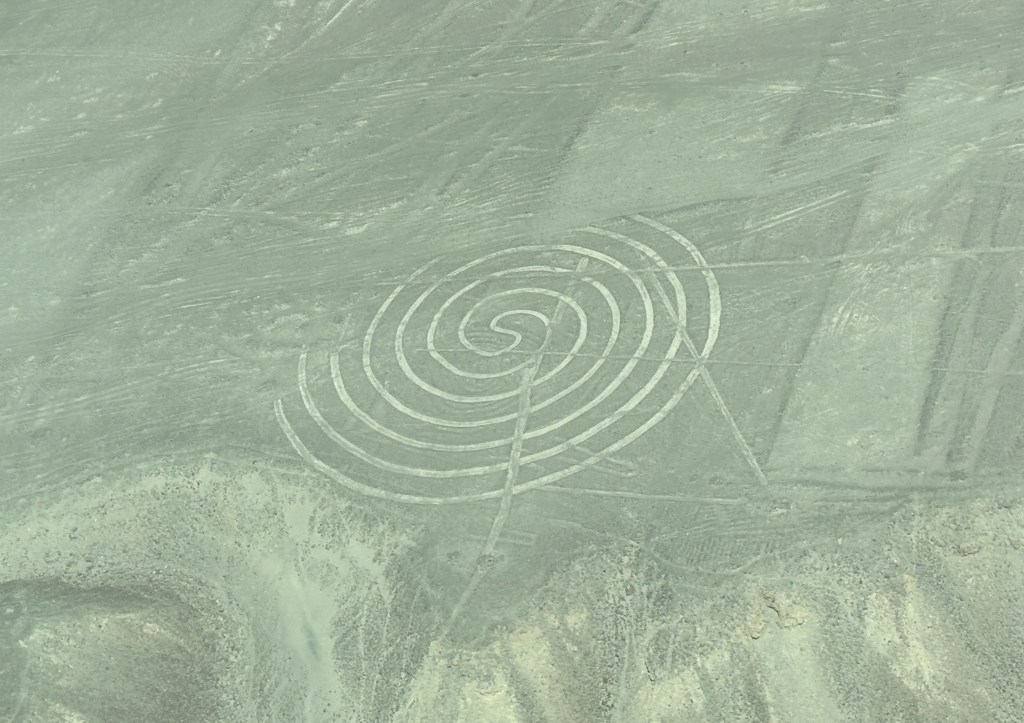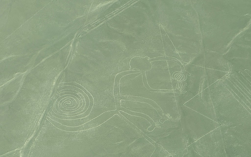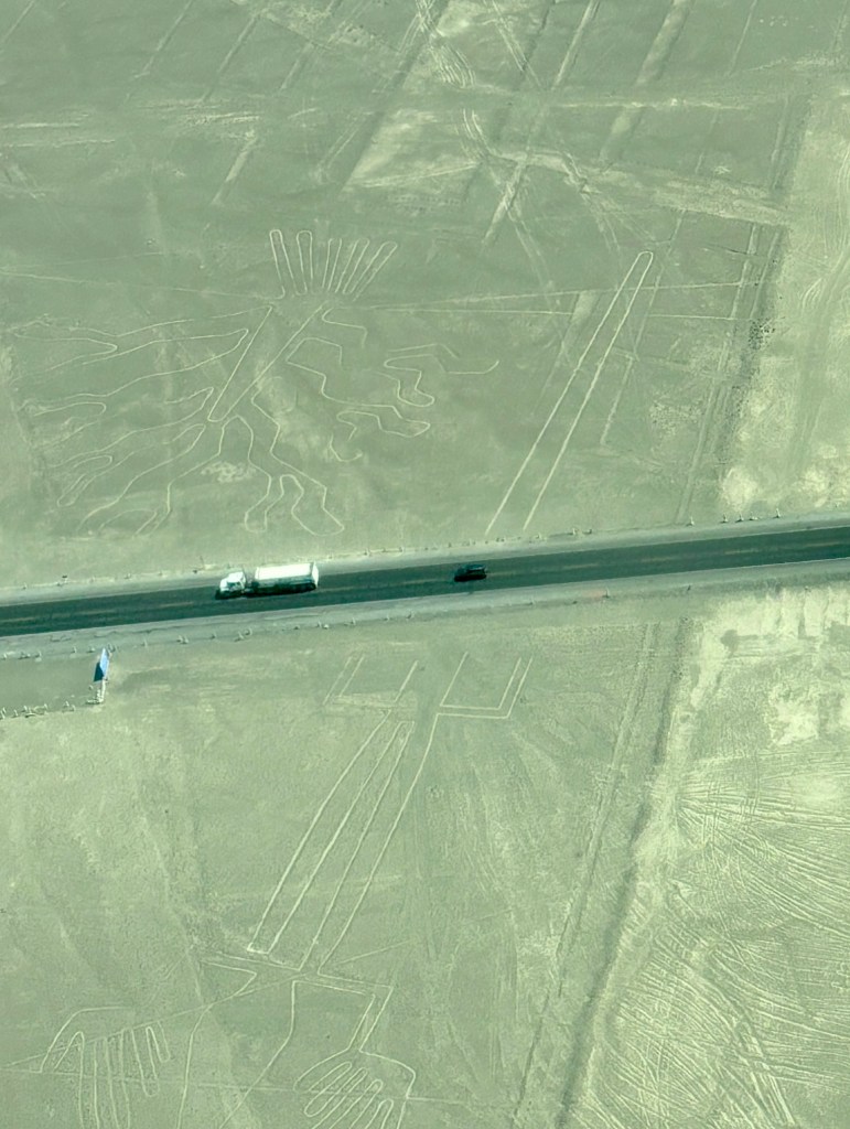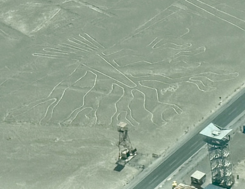 The Nazca lines were discovered on the ground when workers were building part of the PanAm highway in the 1920s.  That section damaged part of the lizard’s leg.