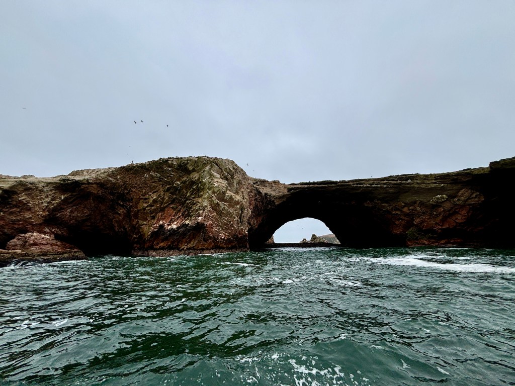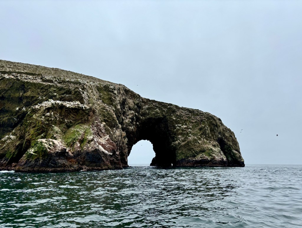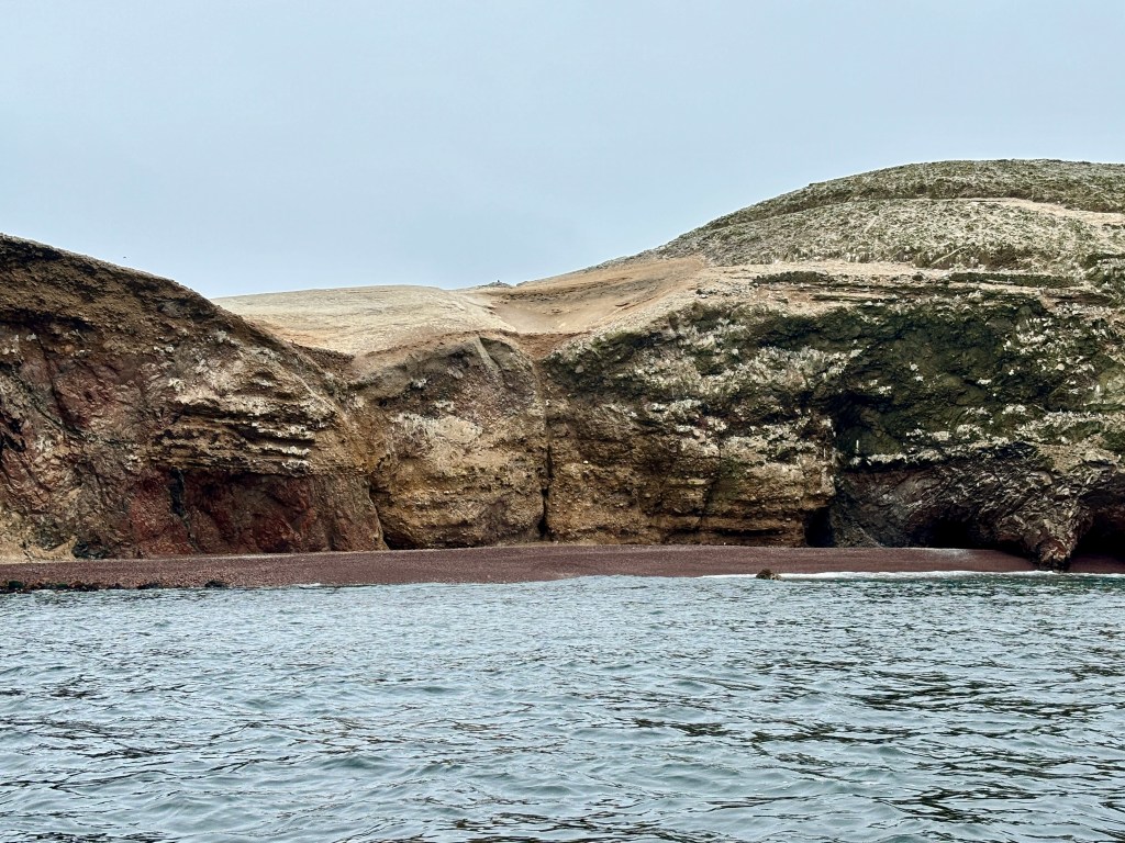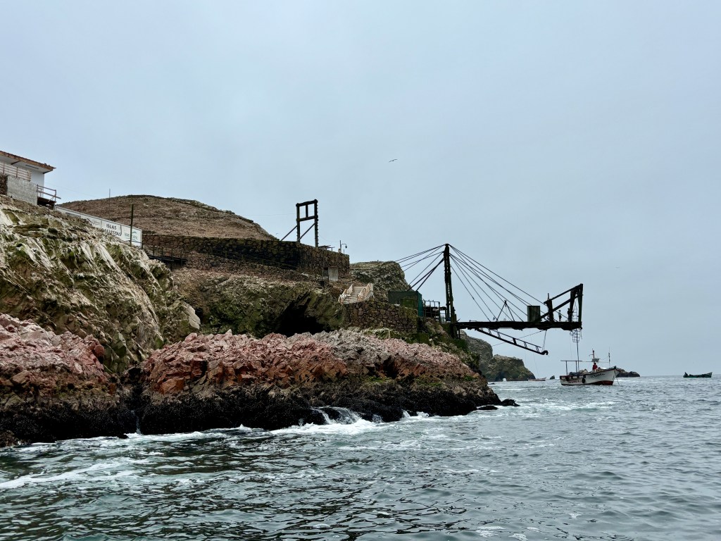 A lot of seabirds means a lot of guano on these and other islands off Peru. The guano once reached depths of 200 feet. Guano has often been used as a fertilizer and was a valuable commodity from the mid-1800s to the early 1900s. This infrastructure is from when guano was actively mined on the islands.  Mining damaged the ecosystem so is now limited and regulated.