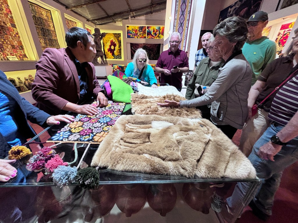 A demonstration taught us how to recognize authentic baby alpaca textiles. We enjoyed looking around for some art or craft work to remind us of this trip.