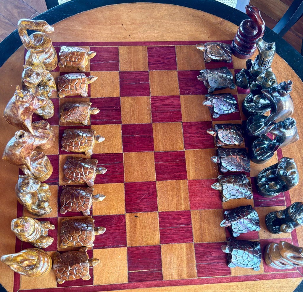 There was an Amazon themed chess board ready for play.