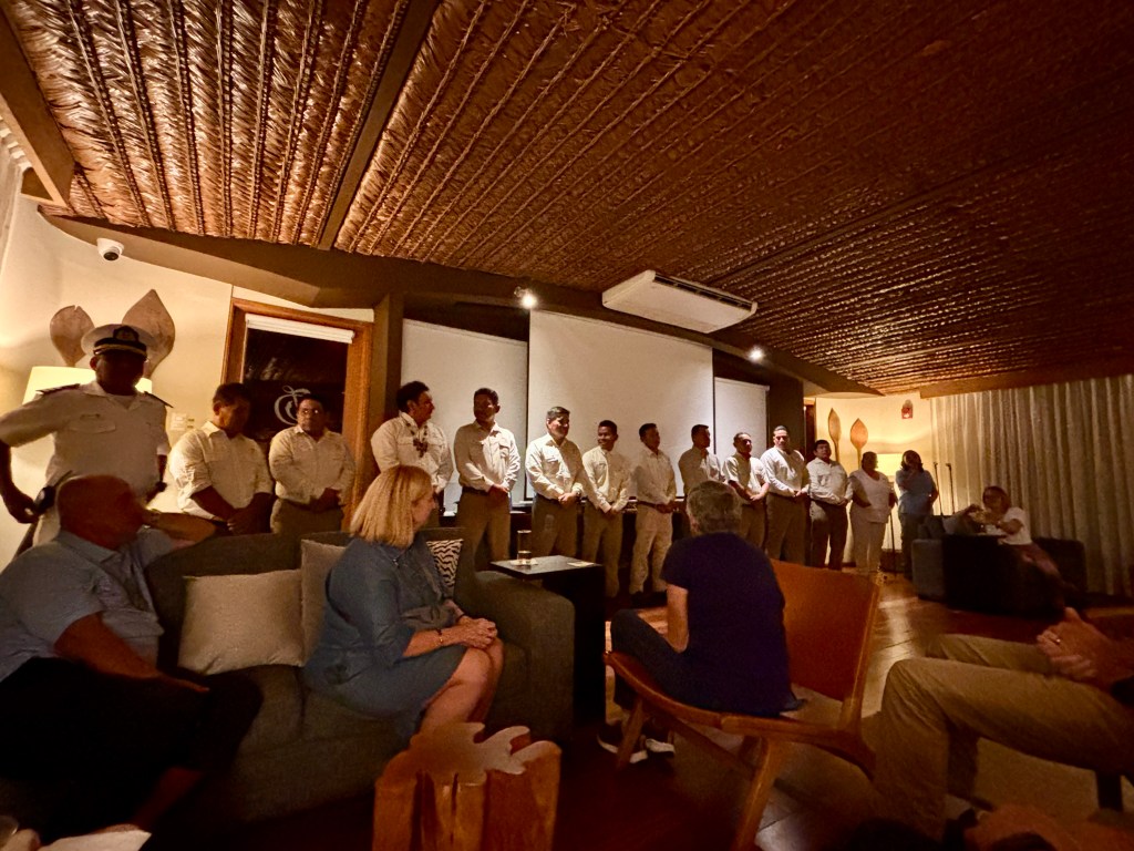 This being our last evening on board, we had a chance to see all the crew dressed up and to thank them for a job very well done.