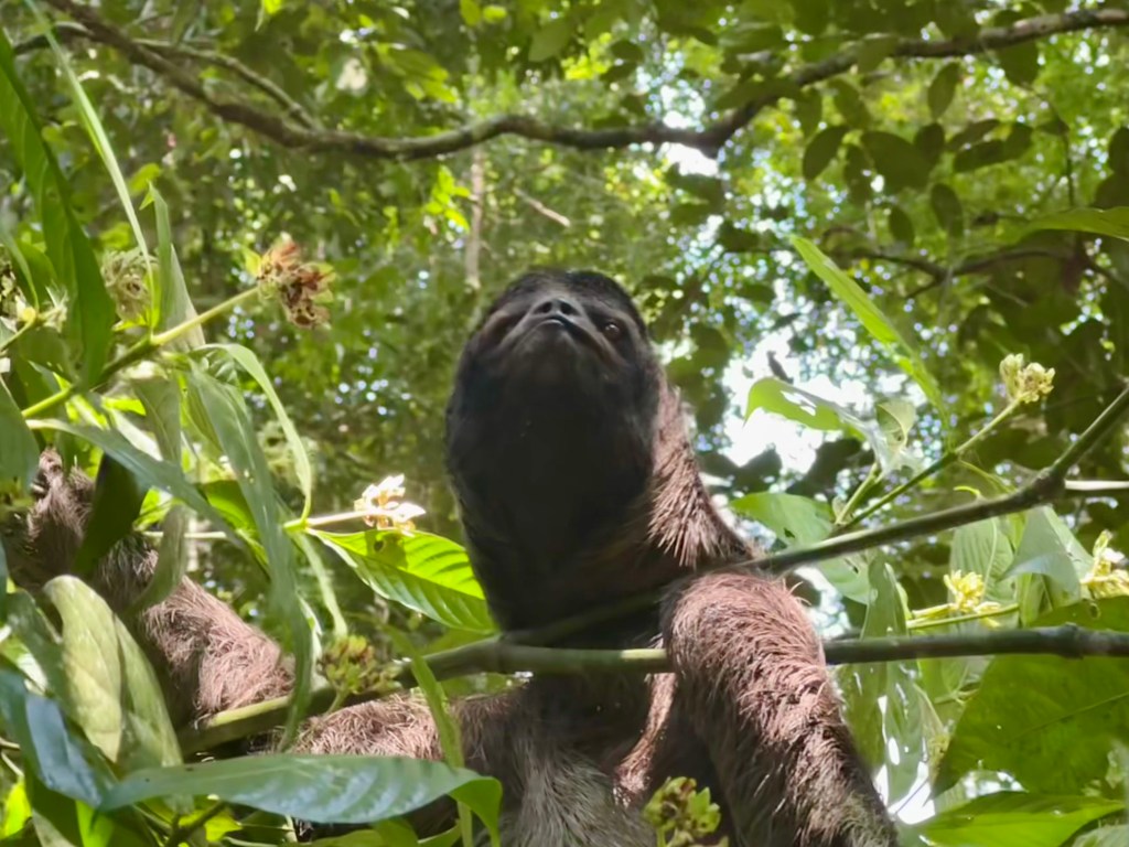 When the hikers returned, they said it had been hot and muggy but they did see a sloth and a tarantula. Someone shared their pictures of the sloth.