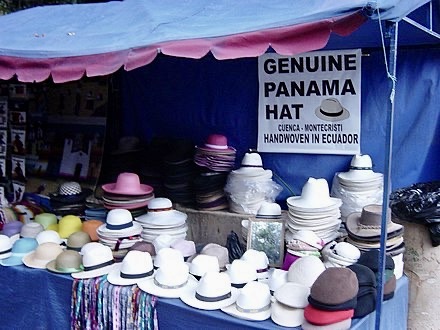 Panama hats are made in Ecuador! The straw from a variety of palm used is grown in Ecuador and the hats were noted by the Spanish conquistadors in 1562. Weaving the traditional Ecuadorian toquilla hat was added to the Unesco Intangible Cultural Heritage List in 2012. (Picture was taken from Wikipedia site.)