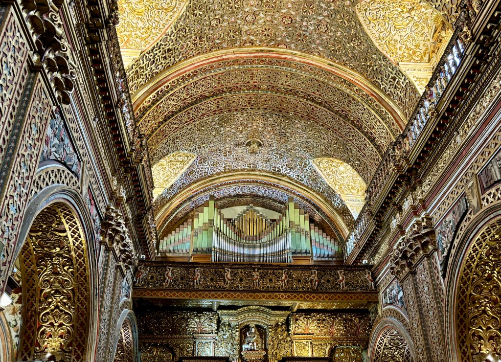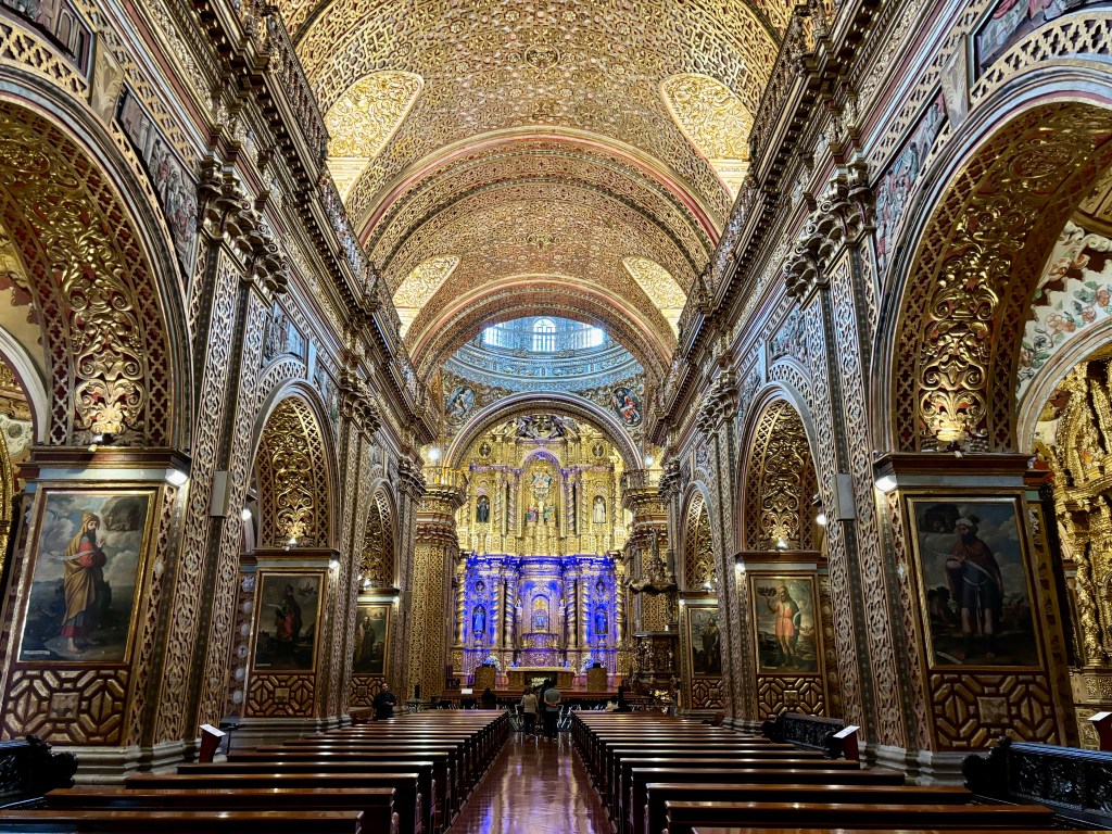 Our next destination was the Compañia Church, or more specifically Iglesia de la Compañía de Jesús. William said that 80 percent of the people in Ecuador are Catholic, but at least half aren’t active.