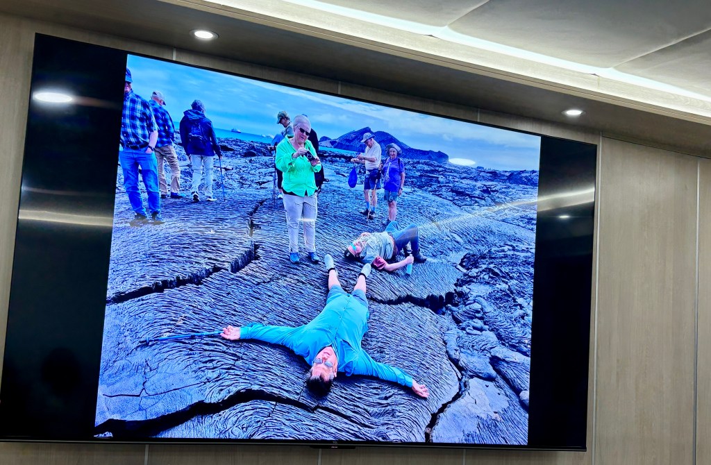 Victor had prepared a photo montage of our trip. I was able to grab a quick picture of one he took of Randy and me on the lava bed.