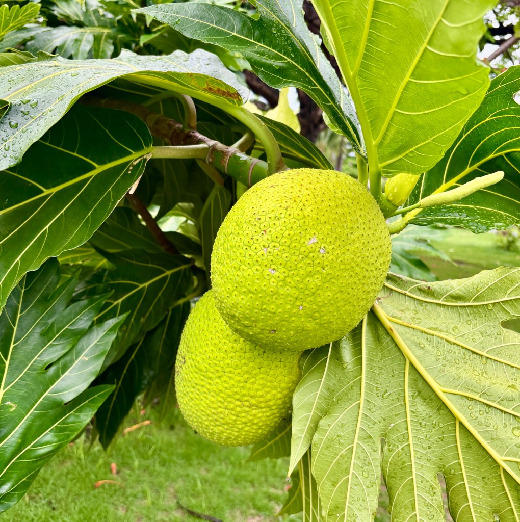 This one we could tell from the fruit – a breadfruit tree.  There is probably a fancier name – but it grows breadfruit!