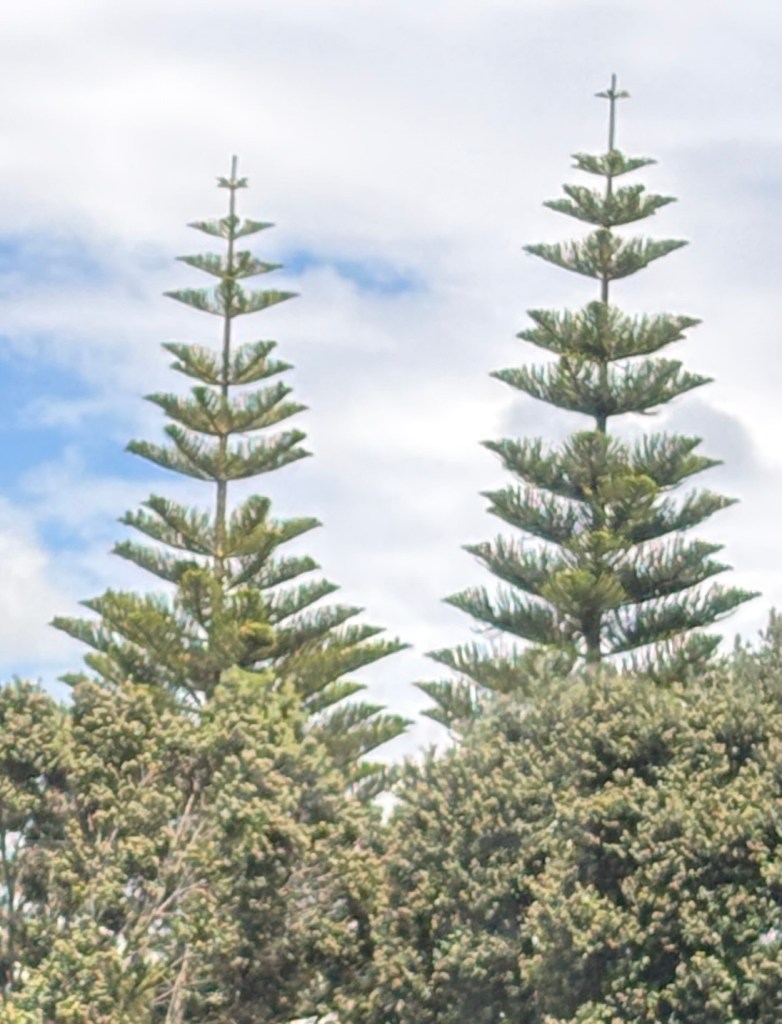 There are Norfolk pines planted along the bay. Missionaries planted them as a sentinel to tell seafarers that this was a safe place to land.