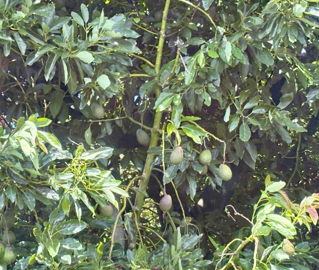 The most common crops here are kiwi fruit and avocados. Everyone seems to have one or both trees.