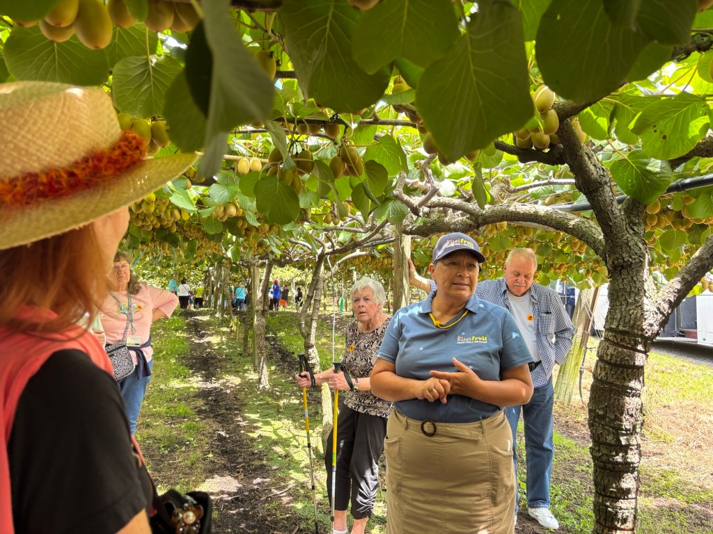 Green kiwi fruit was the primary market for decades but 80 percent of the fruit was lost by disease. They grafted vines to grow gold kiwi fruit onto still healthy green vines to create a gold fruit. That is now the primary crop with the best, again, going to Asia.