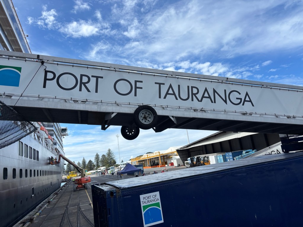 Our guide told us that this is the largest port in New Zealand exporting timber, dairy products and 198,000,000 trays of kiwi fruit. That means BILLIONS of individual fruits.