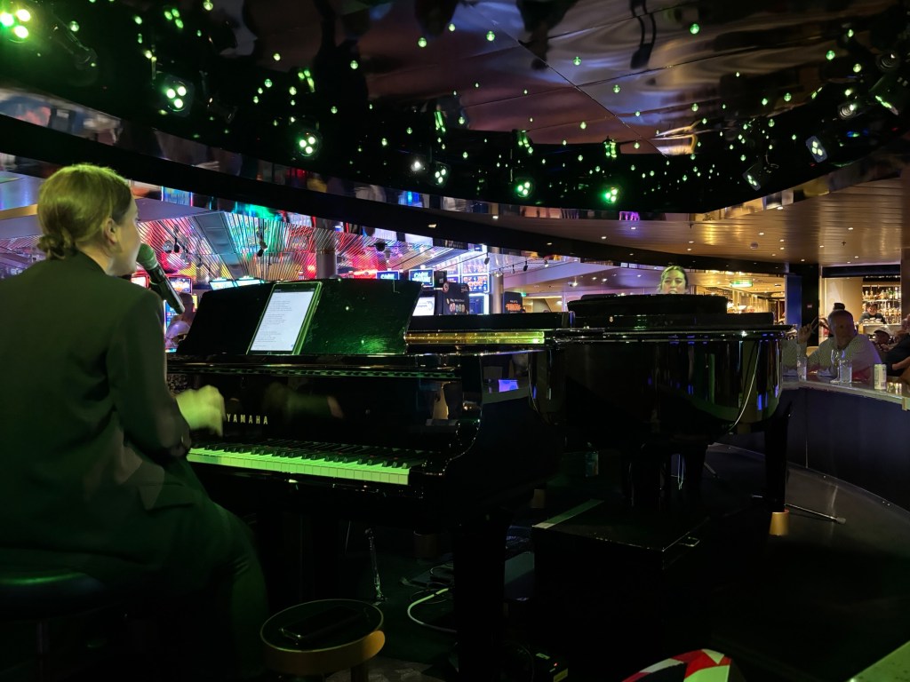 We concluded our night at Billboard Oboard. This venue is available on all Holland America ships and incorporates two piano players playing together.