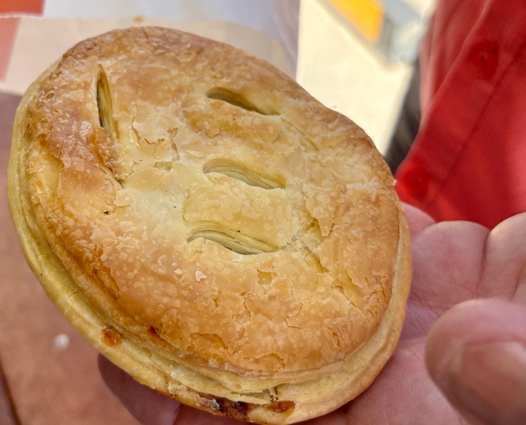 It is similar to an empanada in our world, but seems to be baked not fried.