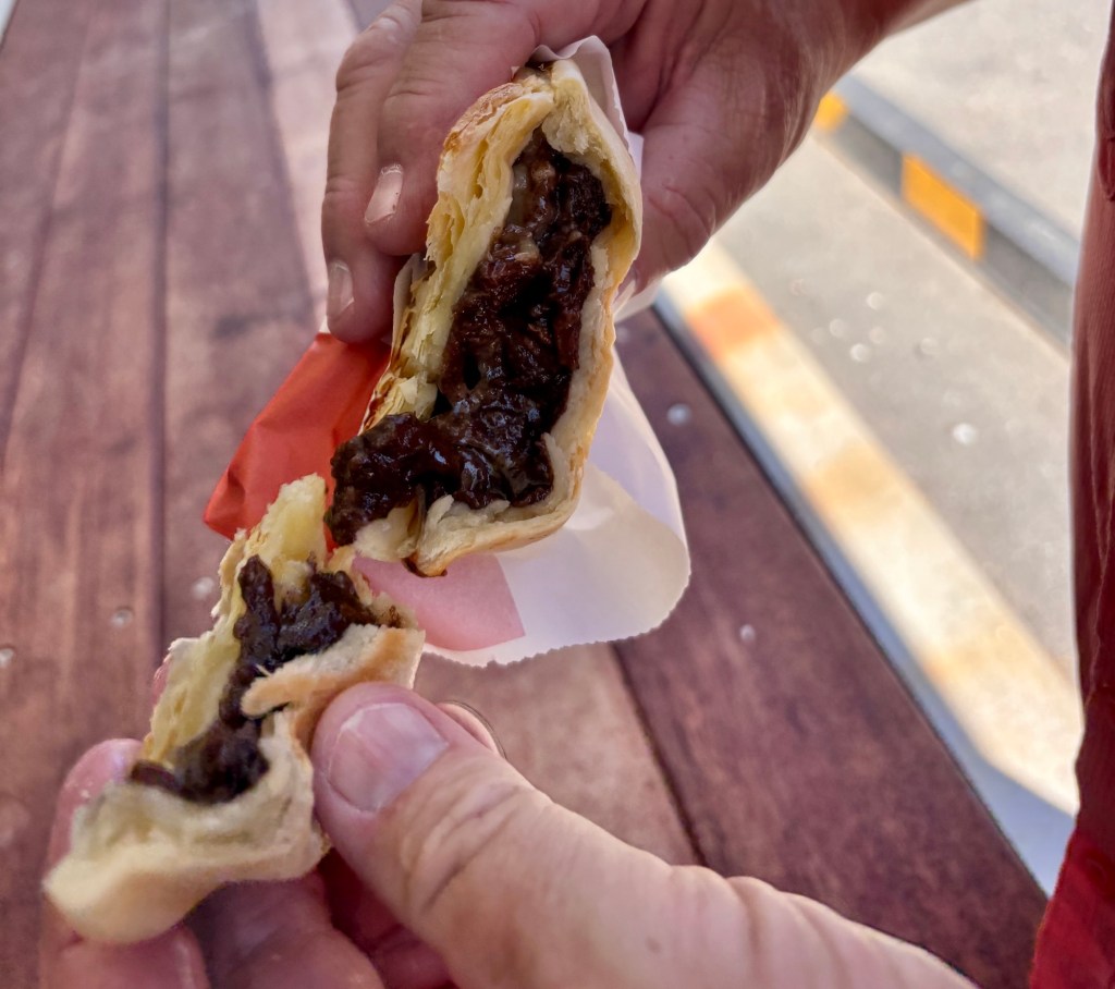 Our ride was about two hours before we stopped in Blenheim and took advantage of the opportunity to get another New Zealand meat pie. We chose steak, cheese and bacon.