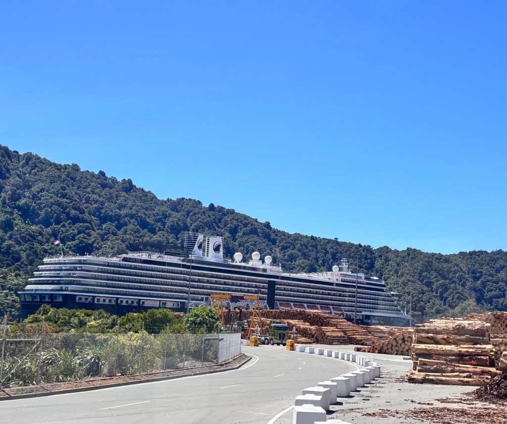 Once again, we are docked where they are storing timber for loading. We have seen this so many times that I’m surprised there are any trees left in New Zealand! Most of the timber goes to China and the primary species exported is Radiata pine.