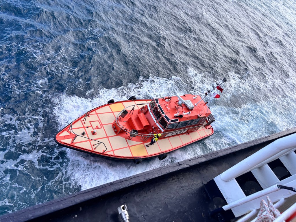Usually, the process of transferring a pilot between the pilot boat and the ship is relatively straightforward. We’ve seen it take just moments many times. We watched for several minutes as this transfer was made quite difficult because of wave action. It was eventually accomplished.