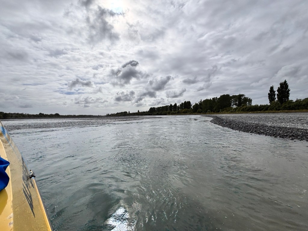 We boated on a braided river, a wide riverbed with small streams criss crossing.