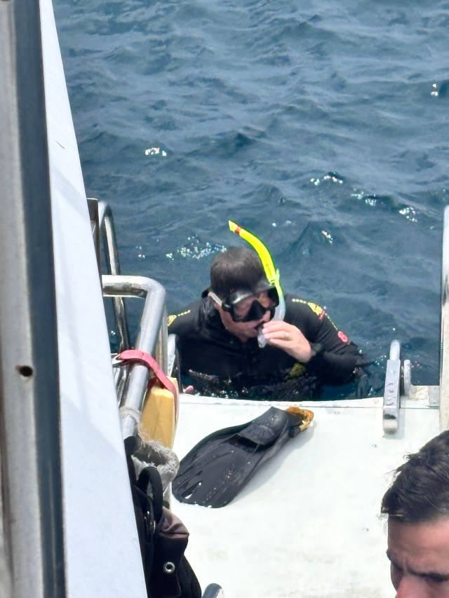 The ship’s crew had done a great job, including organizing and cleaning all this equipment. As you can see, some people chose to dive the reef.