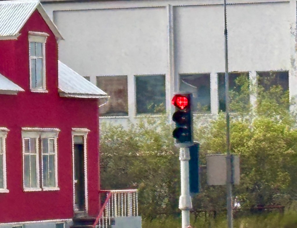 She made sure we noticed the traffic lights in Akureryki – the red lights are heart shaped!