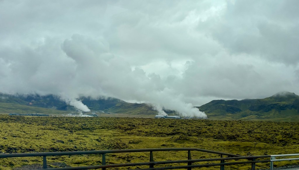 The Hellisheidi Power Plant sits in the high temperature field and uses that geothermic activity to produce electricity and hot water to heat homes in the Reykjavik area. It is all renewable. No fossil fuels are used for heating and electricity.