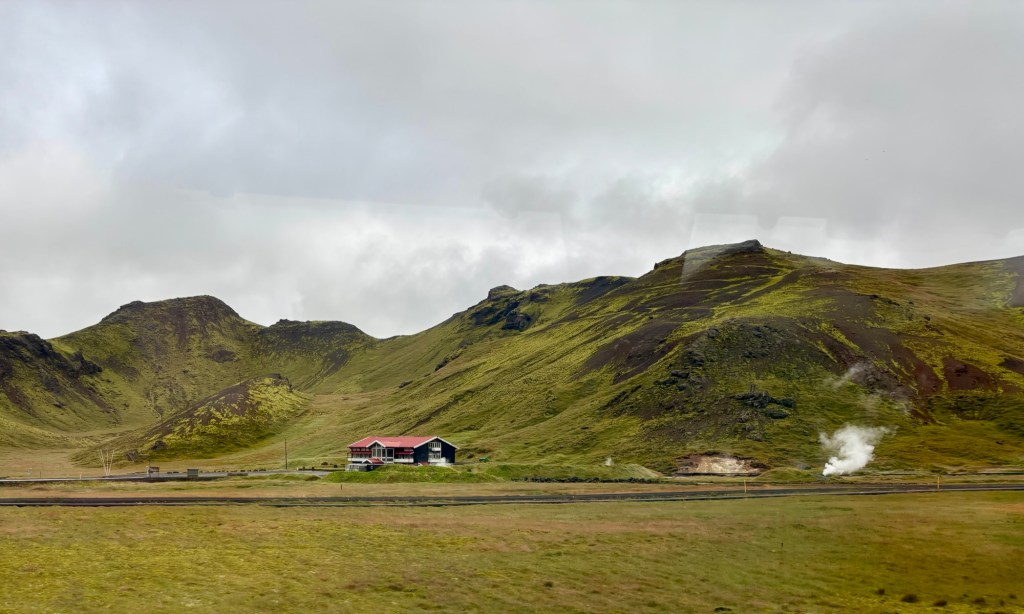 We headed southeast to the Reykjadalur Valley. On our drive, plumes of steam escaped from the geothermic liquid under the surface.