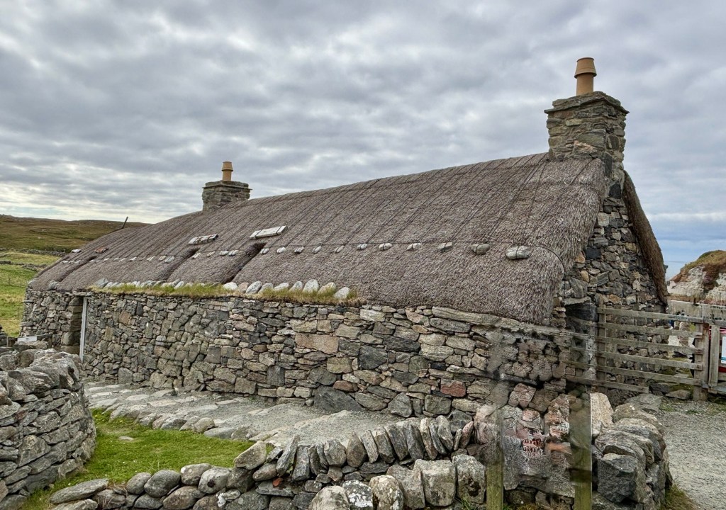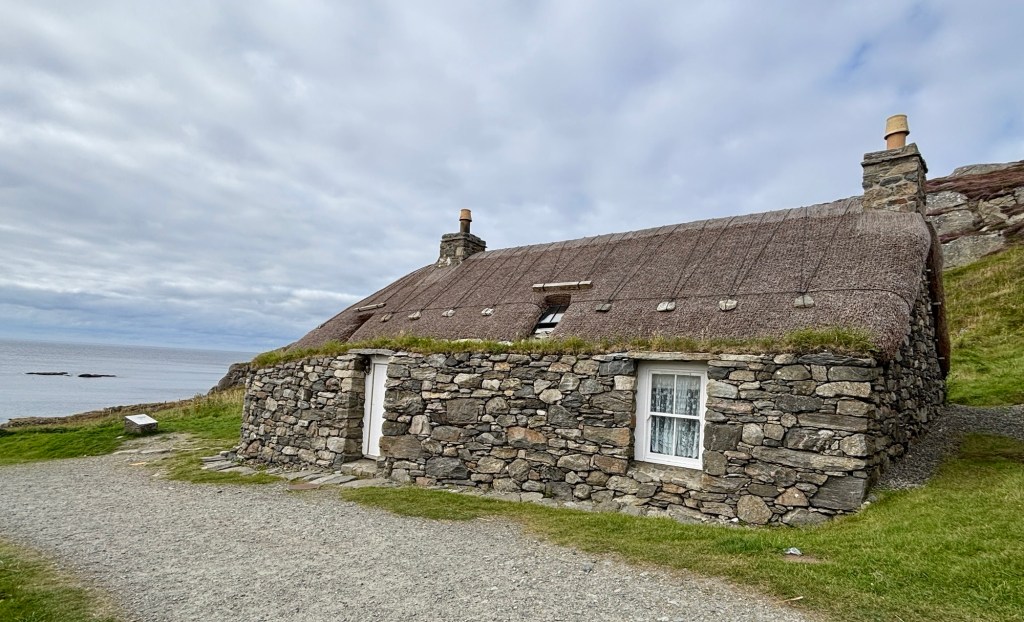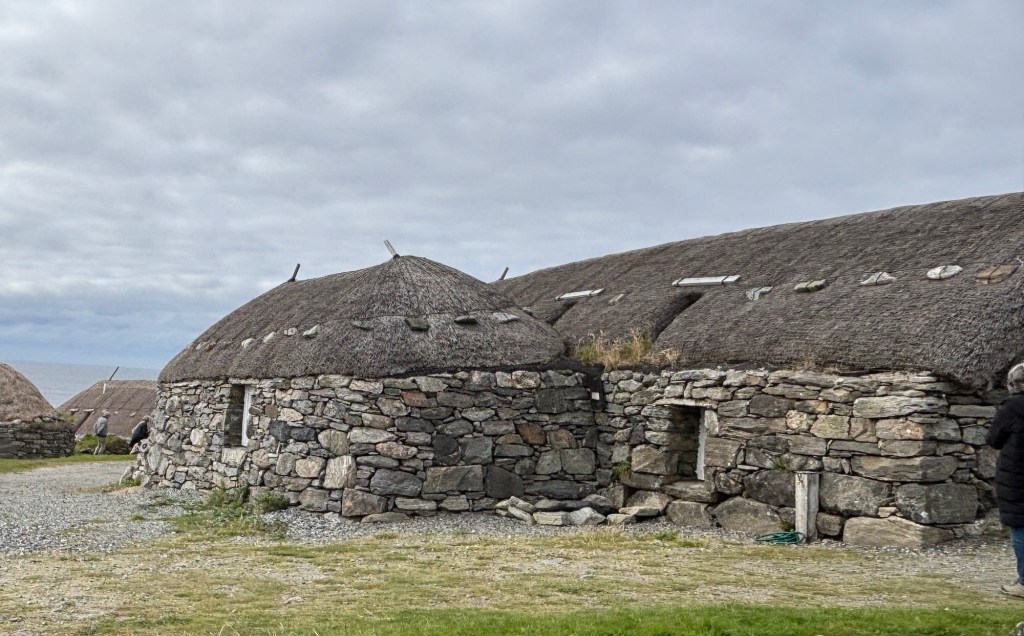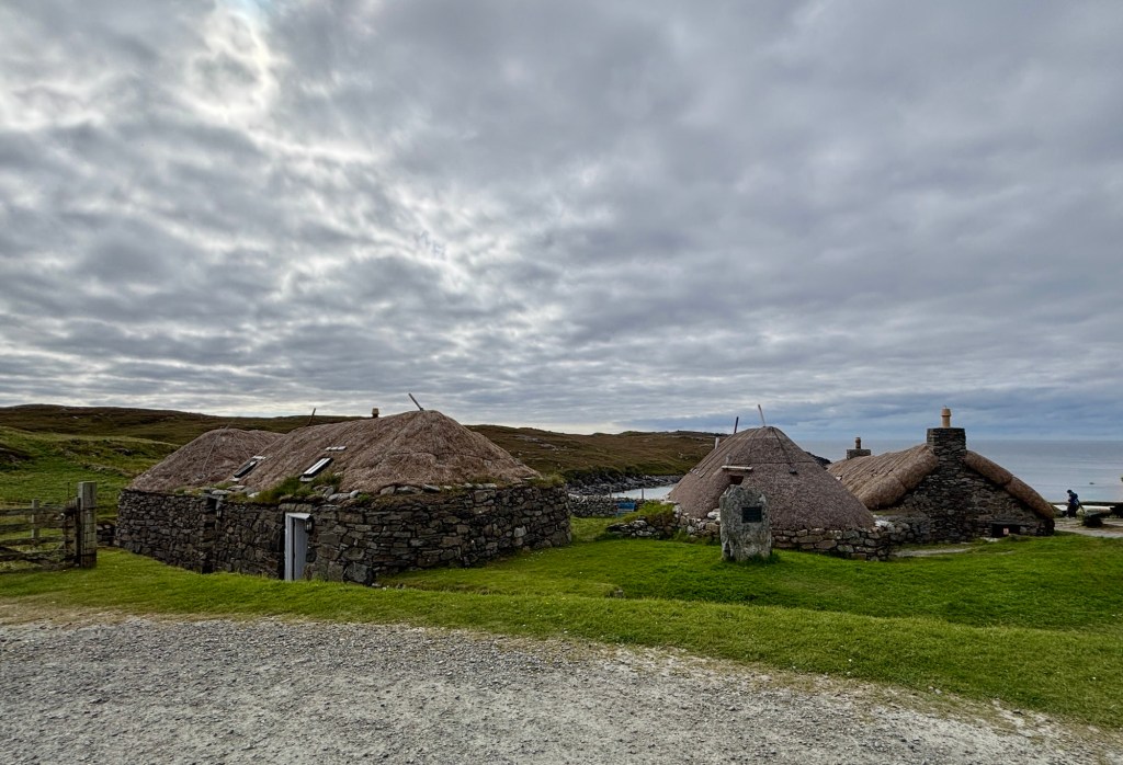 These houses were built in the late 1800s. They were once the traditional style houses along the Hebridean coast.