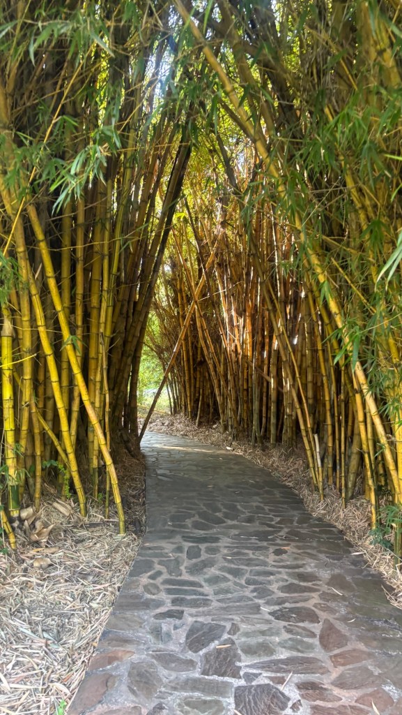 Leaving the hotel grounds, we walked through an arch of golden bamboo. This bamboo had been introduced to the area and is now considered invasive.