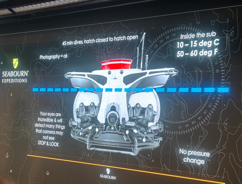 We started with a required briefing on the submersible and kayak operations. It was required because we were both signed up for kayaking and Randy was signed up for the submersible.